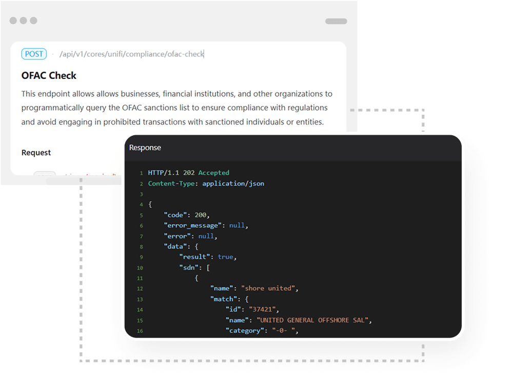 Use APIs or white-labeled interfaces to move money, screen users, and stay audit-ready — all without managing the back-end rails.